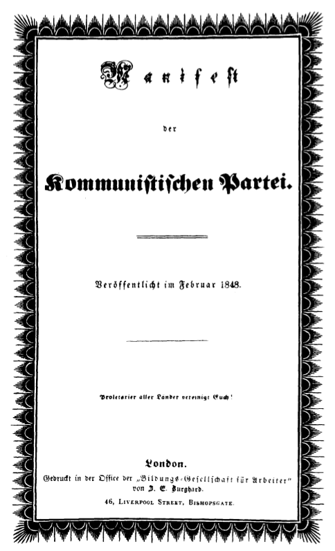 Frontispício da primeira edição do Manifesto. (MECW, v. 6.)