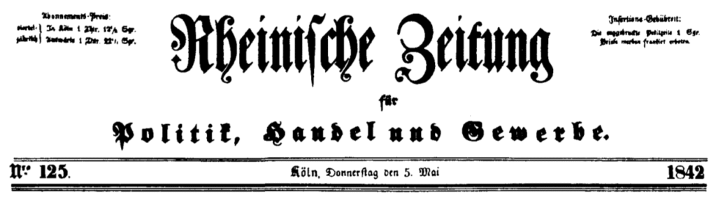 Cabeçalho do Gazeta Renana [Rheinische Zeitung]. (MECW, v. 1.)