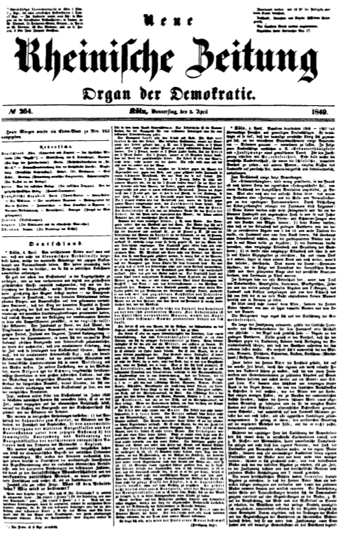 Algumas das conferências de Marx vieram à luz em abril de 1849, no Nova Gazeta Renana, por meio de uma série de artigos intitulados “Trabalho assalariado e capital”.