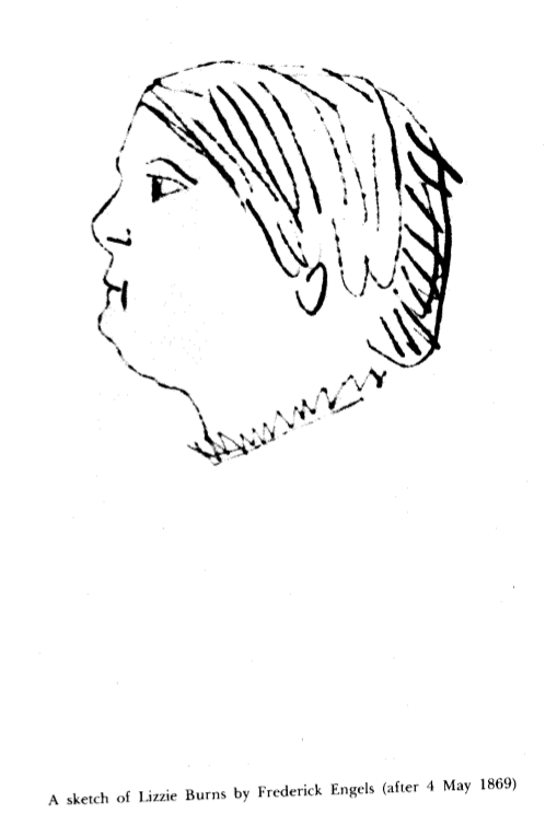 Esboço de Lizzie Burns, depois de 4 de maio de 1869, por Friedrich Engels. (Reprodução de MECW. Marx and Engels Collected Works. Londres: Lawrence Wishart, 1975-2004, v. 43, p. 145.)