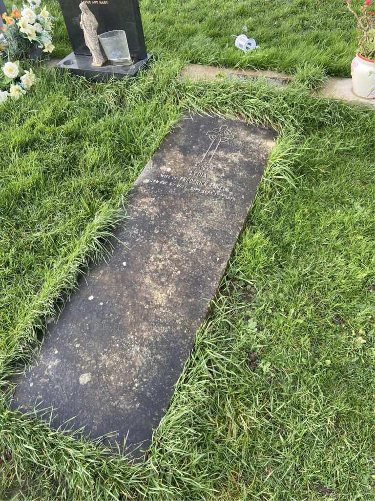 A mudança para Londres pode ter ajudado na saúde a curto prazo de Lizzie, mas, em março de 1877, sua saúde voltou a piorar, necessitando de viagens de recuperação para Brighton.59Friedrich Engels to Friedrich Lessner, 4 mar. 1877; Friedrich Engels to Karl Marx, 6 mar. 1877; Friedrich Engels to Wilhelm Liebknecht, 2 jul. 1877. In: MECW, v. 45. Uma viagem a Ramsgate, em julho de 1877, não teve o efeito positivo desejado e seu apetite permaneceu fraco. Engels estava “começando a ficar seriamente alarmado”.60Friedrich Engels to Karl Marx, 15 jul. 1877; 19 jul. 1877. In: MECW, v. 45. Ela teve uma “crise séria” em sua saúde em 22 de julho, depois da qual se recuperou lentamente.61Friedrich Engels to Karl Marx, 24 jul. 1877. In: MECW, v. 45. Seus persistentes problemas de saúde impediram Engels de completar uma tradução francesa do Manifesto comunista.62Karl Marx to Friedrich Adolph Sorge, 19 out. 1877. In: MECW, v. 45. Em 12 de setembro de 1878, à 1h30 da manhã, ela “morreu pacificamente após uma longa doença”.63Friedrich Engels a Rudolf Engels, 12 set. 1878. In: MECW, v. 45. Ela e Engels haviam se casado legalmente na noite anterior, conforme os ritos da Igreja Anglicana, pelo reverendo W. B. Galloway, da igreja St. Mark, perto de sua casa, na 122 Regent’s Park Road.64Kapp, Eleanor Marx, Vol. 1, op. cit., p. 191. Burns foi enterrada no cemitério católico St. Mary, em Kensal Green, Londres. Sua lápide foi marcada com uma cruz celta e o seguinte epitáfio: “Em memória de Lydia, esposa de Frederick Engels, nascida em 6 de agosto de 1827, falecida em 12 de setembro de 1878. R.I.P.”. A lápide, no estado atual, está em condições precárias, mas parece ter tido sua inscrição recentemente retocada.